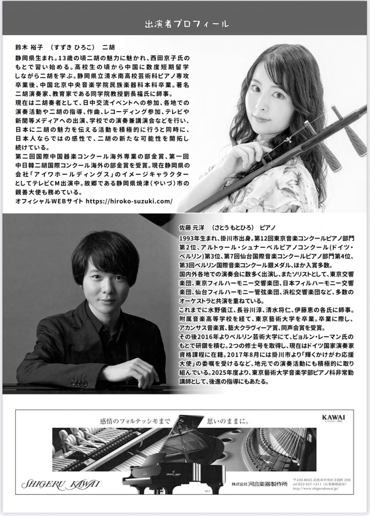 出演: 鈴木裕子(二胡)佐藤元洋(ピアノ)